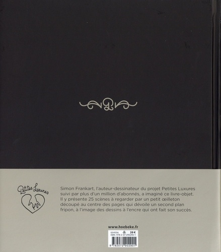 Simon Frankart, l'auteur-dessinateur du projet Petites Luxures suivi par plus d'un million d'abonnés, a imaginé ce livre-objet. Il y présente 25 scènes à regarder par un petit oeilleton découpé au centre des pages qui dévoile un second plan fripon, à l'image des dessins à l'encre qui ont fait son succès.