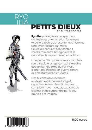 Ryo lha privilégie les perspectives originales et une narration fortement visuelle, capable de raconter des histoires sans avoir recours aux mots. Ce recueil contient sept contes à mi-chemin entre l'imaginaire et le quotidien, la modernité et la tradition. Une petite fille qui s'envole accrochée à son parapluie, un garçon qui s'imagine être un bandit armé du Far West, d'étranges insectes en guerre contre des créatures monstrueuses. Des histoires imprévisibles, au dessin extrêmement soigné, capables de faire rêver. Et d'autres complètement muettes, capables de fasciner et de surprendre par le seul pouvoir des Images.