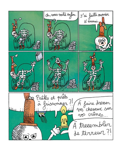 Un squelette moustachu, une maison hantée par une sorcière maléfique et une bonne dose de frissons... Petits peureux, lâchez ce livre !