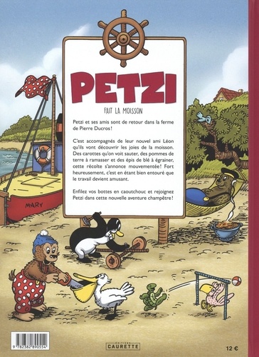 Suivez Petzi dans ses nouvelles aventures ! Petzi et ses amis sont de retour à la ferme de Pierre Ducros et de Clochette ! Après avoir mis la main à la pâte pour faire les semis et s'essayer au métier d'agriculteur, il est temps pour Petzi, Pingo, Rikki, l'Amiral, Caroline et le Perroquet de découvrir les joies de la moisson et de récolter le fruit de leurs efforts. Retrouvez votre ourson préféré dans cette aventure riche en rebondissements et en découvertes qui fait suite à Petzi fermier ! A propos de Petzi Petzi est une série animalière pour enfant créé au Danemark en 1951 par Vilhelm et Carla Hansen. Personnage culte dans de nombreux pays d'Europe, ses aventures sont parues successivement chez Casterman, puis Paquet. Elle a été traduite en plus de dix langues. Cette aventure est une réédition de l'édition classique des années soixante, entièrement remise en couleur dans le respect de l'album d'origine.