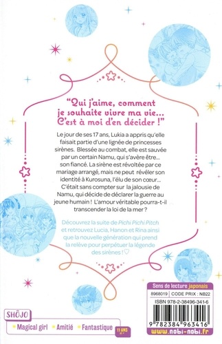 Le jour de ses 17 ans, Lukia a appris qu'elle faisait partie d'une lignée de princesses sirènes. Blessée au combat, elle est sauvée par un certain Namu, qui s'avère être... son fiancé. La sirène est révoltée parce mariage arrangé, mais ne peut révéler son identité à Kurosuna, l'élu de son coeur... C'était sans compter sur la jalousie de Namu, qui décide de déclarer la guerre au jeune humain ! L'amour véritable pourra-t-il transcender la loi de la mer ? Découvrez la suite de Pichi Pichi Pitch et retrouvez Lucia, Hanon et Rina ainsi que la nouvelle génération qui prend la relève pour perpétuer la légende des sirènes !