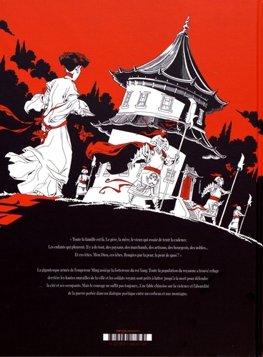 "Toute la famille est là, Le père, la mère, le vieux qui essaie de tenir la cadence. Les enfants qui pleurent. Il y a de tout, des paysans, des marchands, des artisans, des bourgeois, des nobles... Et ces têtes. Mon Dieu, ces têtes. Rongées par la peur, la peur de quoi ? " La gigantesque armée de l'empereur Ming assiège la forteresse du roi Yang. Toute la population du royaume a trouvé refuge derrière les hautes murailles de la ville et les soldats royaux sont prêts à lutter jusqu'à la mort pour défendre la cité et ses occupants. Mais le courage ne suffit pas toujours...Une fable chinoise sur la violence et l'absurdité de la guerre portée dans un dialogue poétique entre un corbeau et une montagne.