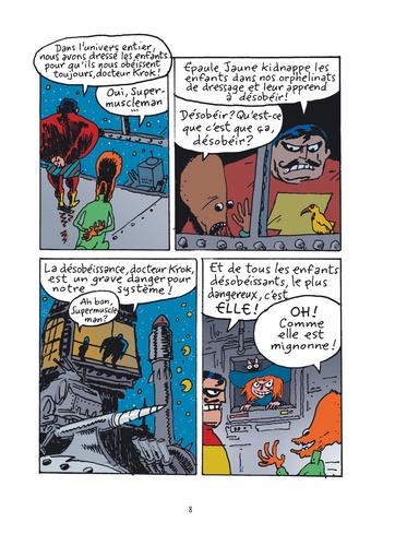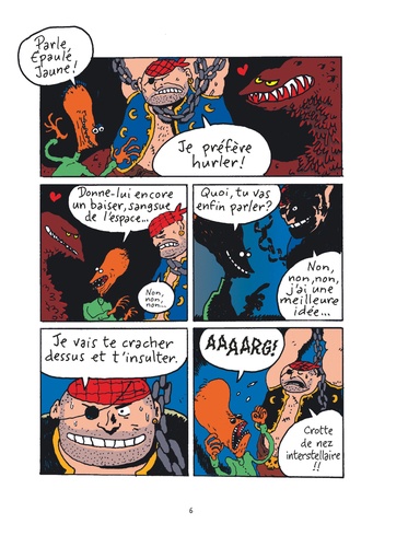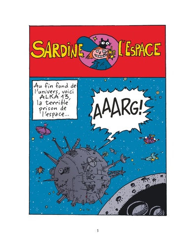 Sardine de l'espace raconte les aventures cosmico-comiques de Sardine, de P'tit Lulu et de Capitaine Epaule jaune. Embarqués sur le vaisseau spatial Hectormalo, ils sillonnent l'espace où ils sont en butte aux vilenies machiavéliques de l'infâme Supermuscleman, Président de l'Univers. Son programme tient en une ligne : dresser les enfants afin qu'ils se transforment en de gentilles créatures inoffensives, inodores et incolores ? en un mot, en ENFANTS OBEISSANTS. Heureusement, capitaine Epaule jaune ne l'entend pas de cette oreille...
