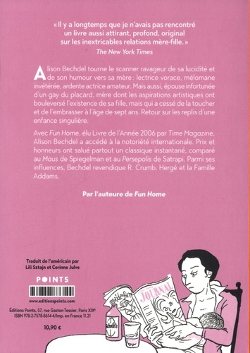 Alison Bechdel tourne le scanner ravageur de sa lucidité et de son humour vers sa mère : lectrice vorace, mélomane invétérée, ardente actrice amateur. Mais aussi, épouse infortunée d'un gay du placard, mère dont les aspirations artistiques ont bouleversé l'existence de sa fille, mais qui a cessé de la toucher et de l'embrasser à l'âge de sept ans. Retour sur les replis d'une enfance singulière. Avec Fun Home, élu Livre de l'Année 2006 par Time Magazine, Alison Bechdel a accédé à la notoriété internationale. Prix et honneurs ont salué partout un classique instantané, comparé au Maus de Spiegelman et au Persepolis de Satrapi. Parmi ses influences, Bechdel revendique R. Crumb, Hergé et la Famille Addams.