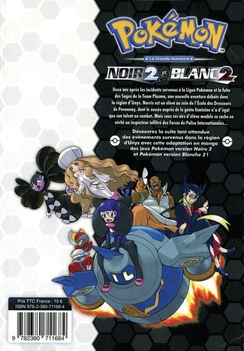 Deux ans après les incidents survenus à la Ligue Pokémon et la fuite des Sages de la Team Plasma, une nouvelle aventure débute dans la région d'Unys. Norris est un élève au sein de l'Ecole des Dresseurs de Pavonnay, dont le succès auprès de la gente féminine n'a d'égal que son talent au combat. Mais sous ses airs d'élève modèle se cache en vérité un inspecteur infiltré des Forces de Police Internationales... Découvrez la suite tant attendue des événements survenus dans la région d'Unys avec cette adaptation en manga des jeux Pokémon version Noire 2 et Pokémon version Blanche 2 !