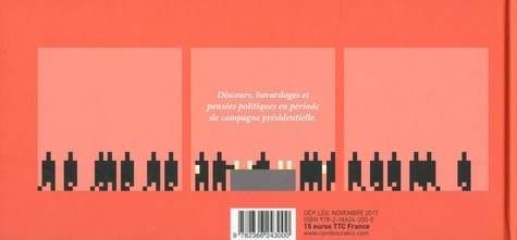 Discours, bavardages et pensées politiques en période de campagne présidentielle. Après "Cinéma2" , Martin Sztajman reprend le principe de ce livre jeu humoristique pour l'appliquer à de grandes figures politiques qui ont marqué l'histoire mondiale plus ou moins récente qu'il s'agit de reconnaître. Une autre partie du livre est issue d'un blog que Martin Sztajman tient sur le site du Monde depuis le début de l'année 2017. Toujours en strips et en pixels, il décortique et tourne en dérision les ressorts de la rhétorique politique de tous bords. Au format à l'italienne, chaque figure est ainsi entièrement dessinée en pixels en l'espace de trois vignettes.