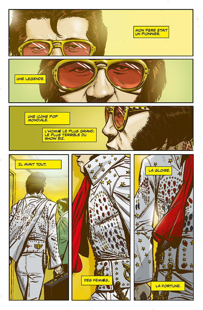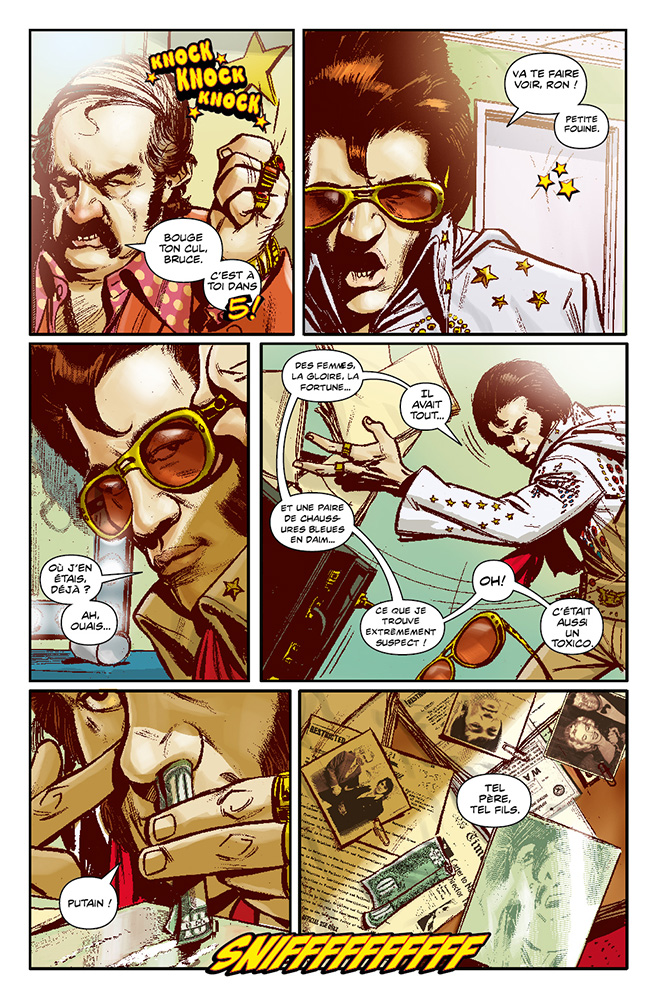 1977, le King est mort et le monde est en deuil. Mais lorsqu'une mystérieuse mallette est trouvée dans sa loge, Bruce, un imitateur d'Elvis accro à la cocaïne, se retrouve pris entre un parrain de la mafia et une conspiration gouvernementale aux ramifications mondiales. Se demandant si toute sa vie n'a pas été un mensonge, Bruce part en mission pour découvrir la vérité sur sa propre identité et celle de son père. Sa mission le plonge au cÅur d'une conspiration perpétrée par une agence de l'ombre connue sous le nom de "The Chamber" .