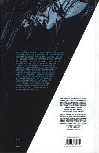 ?Dans un futur proche et dystopique, le monde est à présent divisé non plus selon des frontières géographiques ou politiques, mais financières. La richesse, c'est le pouvoir, et ce pouvoir est à présent entre les mains d'une poignée de familles. Ceux qui leur sont utiles sont choyés. Ils sont rares. Les autres sont du déchet. Dans chaque famille, une personne est élue pour subir un entraînement intensif et obtenir le meilleur de ce que l'argent et la technologie peuvent offrir. Cette personne est à la fois la main qui frappe et le bouclier qui protège. Cette personne est le représentant et le gardien de son clan, son Lazare. Dans la famille Carlyle, le Lazare s'appelle Forever. Voici le début de son histoire...