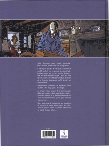 1919. Quelques mois après l'armistice. Félix Castelan revient dans son village natal. Il est inquiet à l'idée de retrouver sa femme et son fils qu'il na pas vu grandir. Une inquiétude justifiée autant par ses six années d'absence que par son nouveau visage : Félix est une Gueule cassée. Arrachée par un obus, la moitié de sa figure est dorénavant cachée derrière un masque blanc. Parallèlement à ce retour, un mystérieux tueur abat les bêtes des paysans du village. La tension monte au sein de la communauté, obligeant le maire à faire appel à Henri Nivoix, enquêteur émérite de la police parisienne et lui aussi mutilé de la Grande Guerre, pour résoudre ces meurtres. Alors qu'il tente de reconstruire son identité et de rattraper le temps perdu auprès des siens, Félix se retrouve contre sa volonté intimement lié à cette étrange affaire...