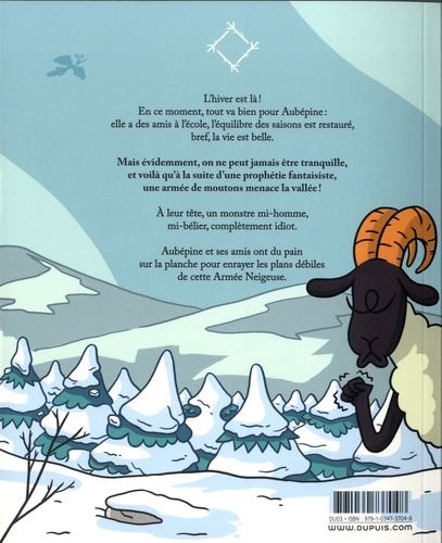 L'hiver est là! En ce moment, tout va bien pour Aubépine : elle a des amis à l'école, l'équilibre des saisons est restauré, bref, la vie est belle. Mais évidemment, on ne peut jamais être tranquille, et voilà qu'à la suite d'une prophétie fantaisiste, une armée de moutons menace la vallée ! A leur tête, un monstre mi-homme, mi-bélier, complètement idiot. Aubépine et ses amis ont du pain sur la planche pour enrayer les plans débiles de cette Armée Neigeuse.