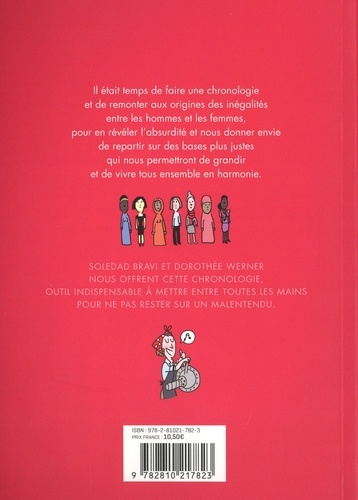 Pour dénoncer et expliquer les inégalités entre les hommes et les femmes, Soledad Bravi et Dorothée Werner sont remontées à l'apparition des premiers humains, afin de trouver l'origine du déséquilibre. En expliquant la cause de cette inégalité, pourquoi elle a perduré pendant des siècles, persiste encore aujourd'hui, et ce que cela a provoqué comme injustices, alors peut-être voudrons-nous repartir sur des bases plus justes et plus saines, peut-être aurons-nous envie de remettre à jour ces droits pour qu'ils soient enfin communs aux deux sexes. Voici la chronologie de l'évolution des droits de la femme en partant du début de l'humanité à nos jours.