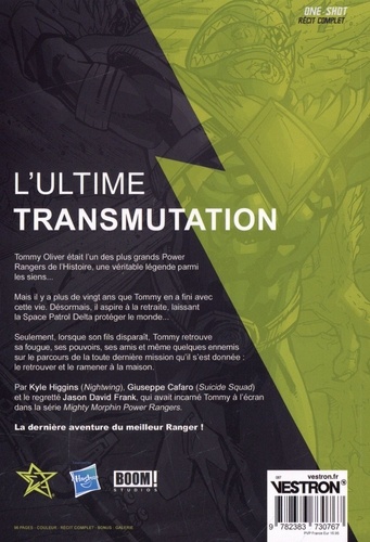 Tommy Oliver était l'un des plus grands Power Rangers de l'Histoire, une véritable légende parmi les siens... Mais il y a plus de vingt ans que Tommy en a fini avec cette vie. Désormais, il aspire a la retraite, laissant la Space Patrol Delta protéger le monde... Seulement, lorsque son fils disparaît, Tommy retrouve sa fougue, ses pouvoirs, ses amis et même quelques ennemis sur le parcours de la toute dernière mission qu'il s'est donnée : le retrouver et le ramener a la maison. Par Kyle Higgins (Nightwing), Giuseppe Cafaro (Suicide Squad) et le regretté Jason David Frank, qui avait incarné Tommy a l'écran dans la série Mighty Morphin Power Rangers. La dernière aventure du meilleur Ranger !