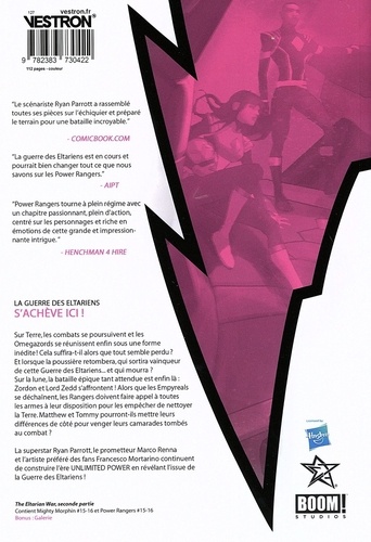 Avec le sort de la Terre et de l'univers entier dans la balance, Seigneur Zedd et Zordon pourront-ils mettre de côté leur conflit assez longtemps pour arrêter les Eltarians ? Au milieu d'une guerre galactique, de nouvelles menaces et des alliances inattendues vont changer l'univers des Power Rangers à jamais !