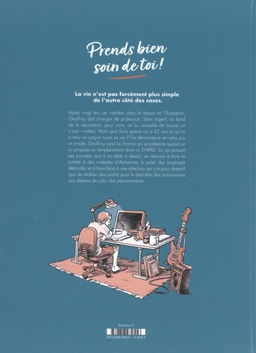 La vie n'est pas forcément plus simple de l'autre côté des cases. Après vingt ans de carrière dans le dessin et l'illustration, Geoffroy doit changer de profession. Sans argent, au bord de la séparation, pour vivre, on lui conseille de trouver un "vrai" métier. Mais quoi faire quand on a 42 ans et qu'on a tenu un crayon toute sa vie ? De déconvenue en refus pur et simple, Geoffroy saisit la chance qui se présente quand on lui propose un remplacement dans un EHPAD. Lui qui passait ses journées seul à sa table à dessin, se retrouve à faire la toilette à des malades d'Alzheimer, à aider des employés débordés et à faire face à une direction qui n'a pour objectif que de réaliser des profits pour le bien-être des actionnaires aux dépens de celui des pensionnaires.