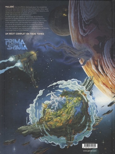 Malgré tous les efforts déployés pour l'en empêcher, Alba a pu rejoindre à temps le Haut conseil et y faire valoir ses droits. Son statut de haute dignitaire enfin reconnu, elle hérite des propriétés et avoirs de son père. Enfin, elle va pouvoir contrattaquer ! Soutenue par une partie de l'équipage de la Flèche, elle part en quête d'indices dans la propriété familiale. mais ce qu'elle y découvre la bouleverse à plus d'un titre. Si ses acquis sont une nouvelle fois battus en brèche, son envie de se battre en est tout autant renforcée ! Elle compte bien tout mettre en oeuvre pour percer enfin les mystères qui concernant non seulement sa famille, mais aussi tout le Prima Spatia !