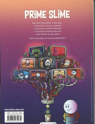 Un nouvel univers inspiré de la page Instagram Prime Slime ! Prime Slime tire ses in ? uences de webcomics tels que Perry Bible Fellowship, Cyanide & Happiness, Loading Artist. Il se veut un menu riche et varié d'absurde, d'humour noir, explorant parfois plusieurs styles graphiques pour servir au mieux chaque gag. Les références à la pop culture y sont nombreuses et depuis 2016, l'univers ne cesse de rassembler les lecteurs sur instagram avec plus de 62 000 abonnés. En 2020, les auteurs donnent également naissance à une mini-série développée par le studio d'animation AMUSE.