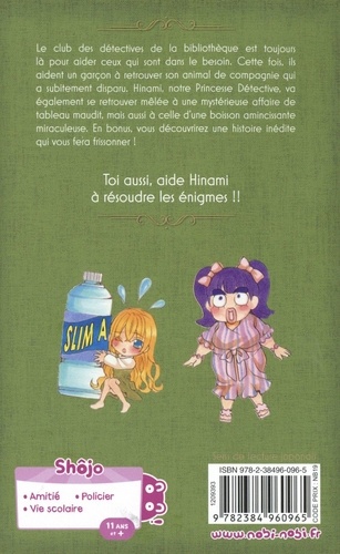 Le club des détectives de la bibliothèque est toujours là pour aider ceux qui sont dans le besoin. Cette fois, ils aident un garçon à retrouver son animal de compagnie qui a subitement disparu. Hinami, notre Princesse Détective, va également se retrouver mêlée d une mystérieuse affaire de tableau maudit, mais aussi à celle d'une boisson amincissante miraculeuse. En bonus, vous découvrirez une histoire inédite qui vous fera frissonner !