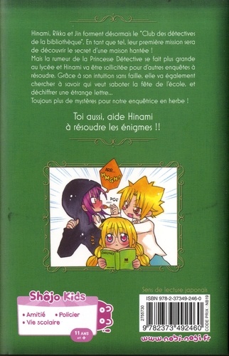 Hinami, Rikka et Jin forment désormais le "Club des détectives de la bibliothèque". En tant que tel, leur première mission sera de découvrir le secret d'une maison hantée ! Mais la rumeur de la Princesse Détective se fait plus grande au lycée et Hinami va être sollicitée pour d'autres enquêtes à résoudre. Grâce à son intuition sans faille, elle va également chercher à savoir qui veut saboter la fête de l'école, et déchiffrer une étrange lettre... Toujours plus de mystères pour notre enquêtrice en herbe ! Toi aussi, aide Hinami à résoudre les énigmes !!