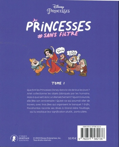 Qui a dit que les Princesses Disney étaient parfaites ? Plongez dans leur quotidien et découvrez-les sous un tout nouveau jour : drôles, gentilles, déterminées, mais aussi têtues, maladroites et grincheuses ! Retrouvez toutes vos princesses préférées dans cette bande dessinée de 96 pages. A lire dès 7 ans. Que font les Princesses Disney dans la vie de tous les jours ? Ariel collectionne les objets fabriqués par les humains. Mais à quoi sert donc un étensèchement ? Quant à Aurore, elle fête son anniversaire ! Qu'est-ce qui pourrait aller de travers, avec trois fées qui organisent le banquet ? Enfin, Pocahontas raconte ses rêves à Grand-Mère Feuillage, qui lui explique leur signification plutôt... particulière.