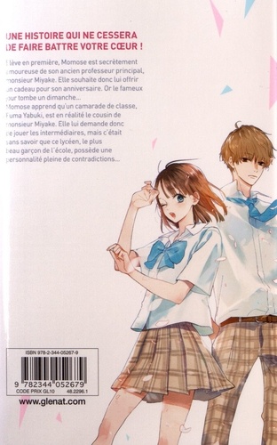 Tornade de sentiments Elève en première, Momose est secrètement amoureuse de son ancien professeur principal, monsieur Miyake. Elle souhaite donc lui offrir un cadeau pour son anniversaire. Or le fameux jour tombe un dimanche... Momose apprend alors qu'un camarade de classe, Fuma Yabuki, est en réalité le cousin de monsieur Miyake. Elle lui demande donc de jouer les intermédiaires, mais c'était sans compter que ce lycéen, le plus beau garçon de l'école, possède une personnalité pleine de contradictions... Dans cet adorable shojo en deux volumes, Ayuko ne s'attarde pas sur une énième romance entre un professeur et son élève. Drôle et attachante, Momose se remet de sa déception amoureuse, affronte la réalité et la complexité de ses sentiments, pour donner sa chance à un nouvel amour naissant... Vous serez happés par le tempérament contrasté de Fuma, qui, derrière sa froideur apparente, cache une réelle bienveillance. Une histoire qui ne cessera de faire battre votre coeur !