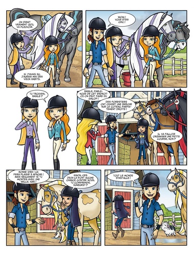 Bienvenue à Horseland ! Retrouve Sarah, Rosa, Marie, Chloé, Zoé et leurs chevaux Scarlet, Panache, Calypso, Chili et Pepper dans l'adaptation BD de ton dessin animé favori ! Ces trois histoires inédites, pleines d'humour, montrent le sens de l'amitié et de la solidarité des habitants du ranch ! N'attends plus pour découvrir leurs nouvelles aventures ! Marie est en vedette dans ces nouvelles histoires avec une chasse aux oeufs de Pâques et un adorable petit oiseau qui a besoin d'aide et qu'elle cache soigneusement... Puis elle reçoit à Horseland une nouvelle venue, Laila, son amie du blog animalier. Le hic, c'est que celle-ci parle plus souvent à Zoé et Chloé qu'à Marie et que visiblement les chevaux ne sont pas sa tasse de thé... Heureusement, Sarah, qui est très psychologue, trouve toujours un moyen pour réconcilier tout le monde et faire de bons pique-niques ! A Horseland, l'amitié est la solution à tout !