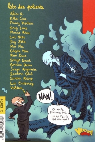 Liste des patients : Aline N. ; Ella Cru ; Franz Kentein ; Greg Lims ; Marco Rtex ; Loïc Ness ; Jay Zohn ; Moe Mee ; Edgar Hou ; Ron Saur ; Gorge Sand ; Gordon Demo ; Serge Angarcia ; Isodore Glub ; Swann Psing ; Luc Ciusserog…