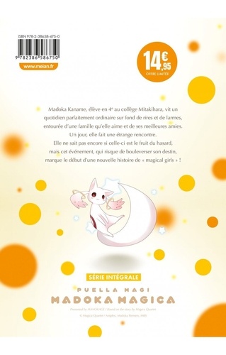 Madoka Kaname, élève en 4e au collège Mitakihara, vit un quotidien parfaitement ordinaire sur fond de rires et de larmes, entourée d'une famille qu'elle aime et de ses meilleures amies. Un jour, elle fait une étrange rencontre. Elle ne sait pas encore si celle-ci est le fruit du hasard, mais cet événement, qui risque de bouleverser son destin, marque le début d'une nouvelle histoire de " magical girls " !