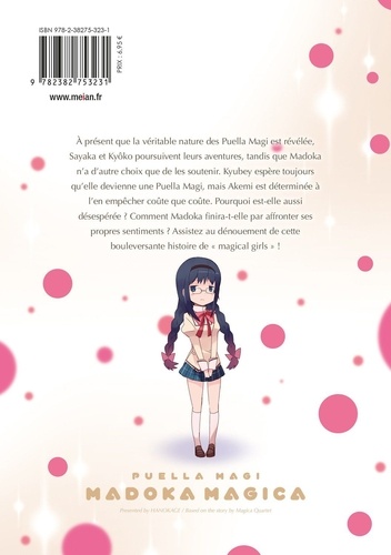 A présent que la véritable nature des Puella Magi est révélée, Sayaka et Kyôko poursuivent leurs aventures, tandis que Madoka n'a d'autre choix que de les soutenir. Kyubey espère toujours qu'elle devienne une Puella Magi, mais Akemi est déterminée à l'en empêcher coûte que coûte. Pourquoi est-elle aussi désespérée ? Comment Madoka finira-t-elle par affronter ses propres sentiments ? Assistez au dénouement de cette bouleversante histoire de "magical girls" !