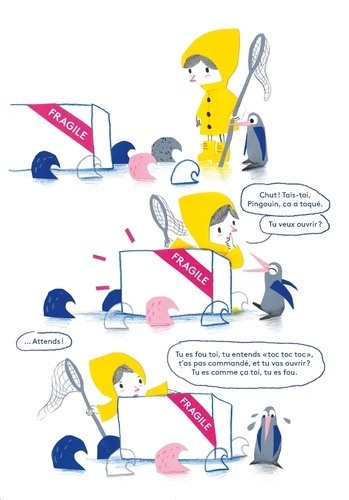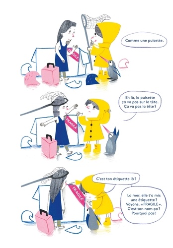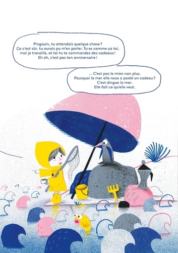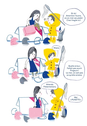 Puisette vit seule avec son pingouin sur son île. Chaque matin, elle accroche les nuages dans le ciel, installe les vagues, gonfle les poissons... Courageuse et un brin autoritaire, Puisette aime quand les choses sont en ordre. Mais voilà qu'un matin arrive sur le rivage un gros paquet qu'elle n'a pourtant pas commandé. Dans ce paquet, il y a une petite fille, qui va venir bousculer ses habitudes. Mais Puisette va vite apprendre que la vie est plus drôle et jolie quand on la partage. Samuel Ribeyron s'est emparé du texte d'un spectacle vivant, écrit par Laure Poudevigne et Estelle Olivier, pour nous livrer cet album d'une rare intensité. Drôle et poétique, avec son texte à l'oralité savoureuse, il nous parle de notre besoin des autres, de leur présence qui réchauffe et nous rend meilleurs.