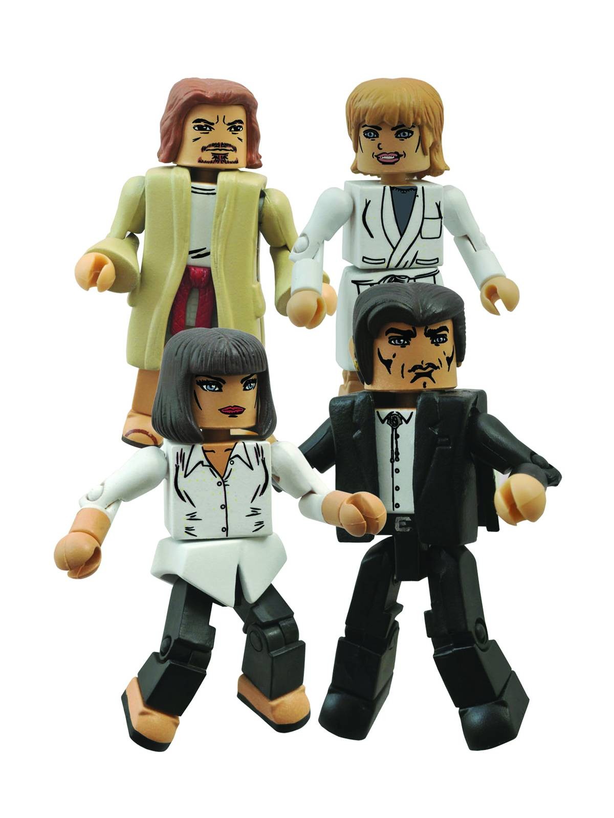 A Diamond Select Toys release! The first Minimates box set for Quentin Tarantino's groundbreaking film Pulp Fiction is here, and it's headed to Jackrabbit Slim's! This four-pack of 2-inch mini-figures re-creates Vince and Mia Wallace's night out at the 1950s-themed diner and includes exclusive Minimates of Vince, Mia, Lance and Jodie! Each Minimate features 14 points of articulation and a variety of interchangeable parts and accessories.