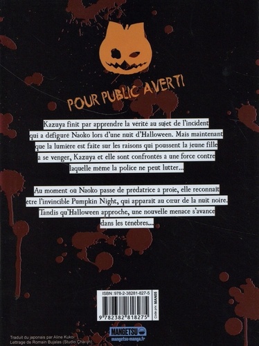 Kazuya finit par apprendre la vérité au sujet de l'incident qui a défiguré Naoko lors d'une nuit d'Halloween. Mais maintenant que la lumière est faite sur les raisons qui poussent la jeune fille à se venger, Kazuya et elle sont confrontés à une force contre laquelle même la police ne peut lutter... Au moment où Naoko passe de prédatrice à proie, elle reconnaît être l'invincible Pumpkin Night, qui apparaît au coeur de la nuit noire. Tandis qu'Halloween approche, une nouvelle menace s'avance dans les ténèbres... Un récit sanguinaire pour les amateurs de slasher movie, à ne pas mettre entre toutes les mains ! "Un récit tortueux et indomptable". Coyote Mag "Un must". L'éclaireur Fnac