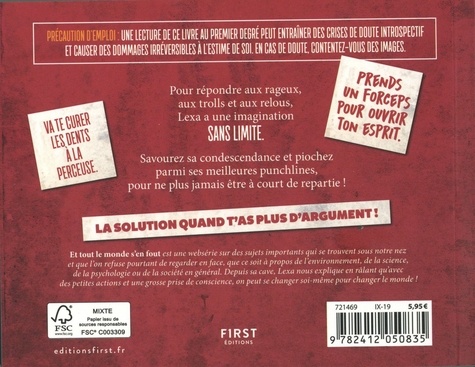La compilation des meilleures punchlines de Lexa, de la chaîne YouTube "Et tout le monde s'en fout" ! Pour répondre aux rageux, aux trolls, aux cons et aux reloux, Lexa a une imagination sans limite. Retrouvez une compilation de ses meilleures punchlines, pour ne plus jamais être à court de repartie ! Prends un forceps pour ouvrir ton esprit. . Bande-toi les yeux et cours très vite dans une forêt. . Je crois que tu n'as pas téléchargé la mise à jour de ton cerveau. . Va t'enterrer pour voir si tu pousses.