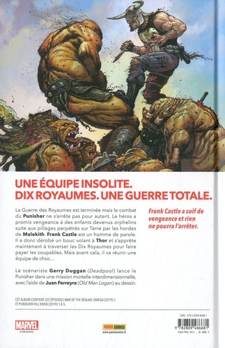 La Guerre des Royaumes est terminée mais le combat du Punisher ne s'arrête pas pour autant. Le héros a promis vengeance à des enfants devenus orphelins suite aux pillages perpétrés sur Terre par les hordes de Malekith. Frank Castle est un homme de parole. Il a donc dérobé un bouc volant à Thor et s'apprête maintenant à traverser les Dix Royaumes pour faire payer les coupables. Mais avant cela, il va réunir une équipe de choc... Frank Castle a soif de vengeance et rien ne pourra l'arrêter. Le scénariste Gerry Duggan (Deadpool) lance le Punisher dans une mission mortelle interdimensionnelle, avec l'aide de Juan Ferreyra (Old Man Logan) au dessin.