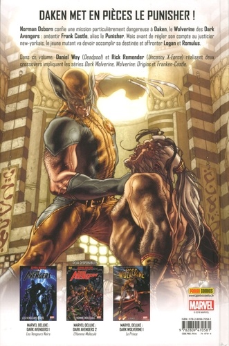 Norman Osborn confie une mission particulièrement dangereuse à Oaken, le Wolverine des Dark Avengers : anéantir Frank Castle, alias le Punisher. Mais avant de régler son compte au justicier new-yorkais, le jeune mutant va devoir accomplir sa destinée et affronter Logan et Romulus. Dans ce volume, Daniel Way (Deadpool) et Rick Remender (Uncanny X-Force) réalisent deux crossovers impliquant les séries Dark Wolverine, Wolverine : Origins et Franken-Castle.
