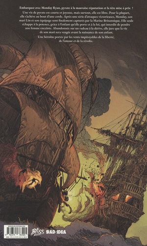 Embarquez avec Monday Ryan, une pirate à la mauvaise réputation et la tête mise à prix. Etre pirate, c'est vivre une vie courte et joyeuse, et la vivre libre. Pour la plupart, c'est au bout d'une corde qu'elle s'achève. Après une série d'attaques victorieuses, Monday, son mari et son équipage sont poursuivis sans relâche par la Marine Britannique. Finalement capturée, ce n'est que grâce à l'enfant qu'elle porte qu'elle échappe à la potence : le droit interdit de pendre une femme enceinte. Son mari et son équipage n'ont pas cette chance. Laissée seule sur un rafiot à dériver dans l'océan, elle jure de donner naissance à son enfant dans un monde où la mort de son père aura été vengée.