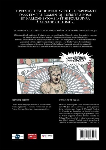 LA PREMIERE BD DE JEAN-CLAUDE GOLVIN, LE MAITRE DE LA RECONSTITUTION ANTIQUE UNE AVENTURE AU COEUR DE LA PREMIERE CAPITALE DE LA GAULE : NARBO-MARTIUS Cette bande dessinée est le premier tome d'un diptyque qui se terminera en Egypte. L'histoire se déroule au début du IIIe siècle de notre ère sous Caracalla. A Rome, l'ampleur des crimes du cruel et sanguinaire empereur a poussé le puissant sénateur Maximus à fonder une organisation secrète, la Lupa nigra, dont le but est l'assassinat du tyran. Pourquoi Pyrame d'Alexandrie a –t-il été poignardé par un membre de cette secte ? Quels secrets renferme le papyrus que son agresseur a tenté de lui dérober ? Pourquoi des Egyptiens adorateurs du dieu Seth ont-ils commandité l'enlèvement de Tulia, la fille de Pyrame, à Narbo-Martius ? Caius, commerçant de cette cité, et son ami Lucius, pourront-ils sauver cette jeune adepte du culte d'Isis ? Seront-ils capables de comprendre à quel usage est destinée la pyramide de cristal, la Quadratura, élaborée à l'aide des formules mathématiques contenues dans le papyrus de Pyrame ? Un cahier pédagogique complète la bande dessinée. Sur une douzaine de pages, images et illustrations permettront de présenter les sources du récit et d'en savoir plus sur la capitale gallo-romaine de Narbo-Martius. Cette bande dessinée est imaginaire mais elle n'est pas pour autant anachronique : elle s'inspire de faits, de lieux et de vestiges qui existent ou ont réellement existé.