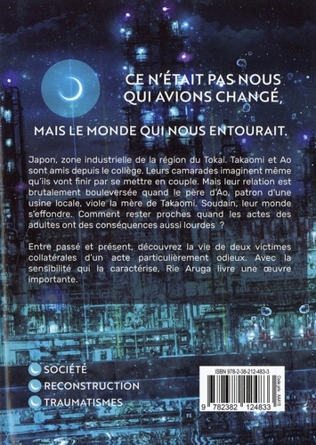 Entre passé et présent, découvrez la vie de deux victimes collatérales d'un acte particulièrement odieux. Avec la sensibilité qui la caractérise, Rie Aruga livre une oeuvre importante. Japon, zone industrielle de la région du Tokai. Takaomi et Ao sont amis depuis le collège. Leurs camarades imaginent même qu'ils vont finir par se mettre en couple. Mais leur relation est brutalement bouleversée quand le père d'Ao, patron d'une usine locale, viole la mère de Takaomi. Soudain, leur monde s'effondre. Comment rester proches quand les actes des adultes ont des conséquences aussi lourdes ?