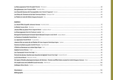 Quand le manga réinvente les grands classiques de la peinture. De Botticelli à Picasso en passant par Van Gogh, découvrez les toiles de maître comme vous ne les aviez encore jamais vues ! Au fil des 112 pages de ce magnifique livre illustré, apprenez-en d'avantage sur ces classiques et laissez-vous surprendre par l'alliance étonnante du manga et des peintures iconiques au travers du regard de plus d'une quarantaine de mangaka et d'illustrateurs japonais.