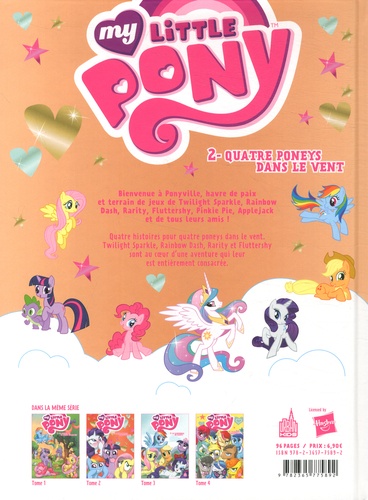Bienvenue à Ponyville, havre de paix et terrain de jeux de TwiLight Sparkle, Rainbow Dash, Rarity, FLuttershy, Pinkie Pie, AppLejack et de tous Leurs amis ! Quatre histoires pour quatre poneys dans le vent. Twilight Sparkle, Rainbow Dash, Rarity et Fluttershy sont au coeur d'une aventure qui leur est entièrement curée.
