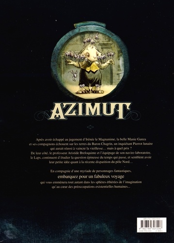 Un fabuleux voyage dans les secrets du Temps Après avoir échappé au jugement d'Irénée le Magnanime, la belle Manie Ganza et sa troupe de saugres atterrissent sur le triste royaume volant du baron Chagrin. Ce dernier, personnage mythique s'il en est, aurait réussi à vaincre la vieillesse... mais à quel prix ? De leur côté, le professeur Aristide Breloquinte et l'équipage de son navire-laboratoire Le Laps, continuent d'étudier la question épineuse du temps qui passe, et semblent avoir leur petite idée quant à la récente disparition du pôle Nord... La fantastique épopée tragi-comique d'Azimut se poursuit ! Son graphisme soigné, son inventivité rare et la richesse de son univers ont déjà séduit à la fois public et critiques, avec un premier tome récompensé à plusieurs reprises.