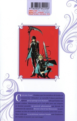 C'est moi, Fumi ! Pendant que les membres de Genbu affrontent les "offrandes" je surveille l'espace psychique spécial que je partage avec Kyûtarô, afin qu'il mène son propre combat. Maintenant qu'il s'est allié avec son serpent, ce dernier possède un pouvoir phénoménal qui devrait lui permettre de vaincre et décorer celui d'Aoi Shinonome. Le prétendant au titre de maître de Seiryû pourrait alors être sauvé... Mais voilà que la mystérieuse maison Suzaku sort finalement de l'ombre et montre son vrai visage !