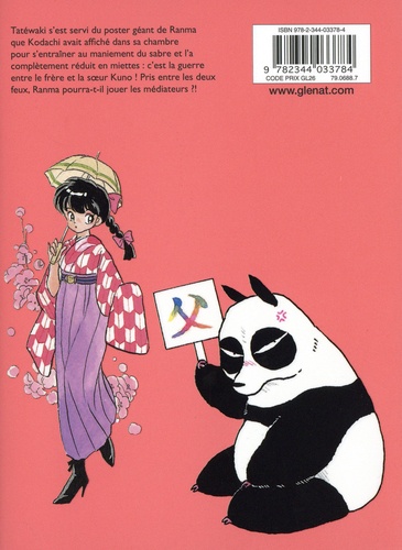 Tatéwaki s'est servi du poster géant de Ranma que Kodachi avait affiché dans sa chambre pour s'entraîner au maniement du sabre et l'a complètement réduit en miettes : c'est la guerre entre le frère et la soeur Kuno ! Pris entre les deux feux, Ranma pourra-t-il jouer les médiateurs ? !