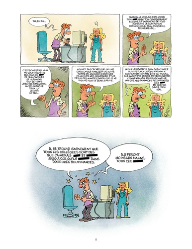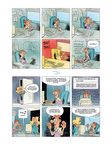 Pas toujours facile le quotidien d'un stagiaire ! Qui n'a jamais vécu un stage en entreprise bien galère, mais alors vraiment vraiment galère ? Dans cet album, on suit le quotidien de Claire qui débute son stage à la SOPITEC. Les jours se répètent et paraissent énormément se ressembler. Elle se retrouve inondée de powerpoints sans aucun intérêt, passe de service en service avec le même sentiment de vacuité, participe à des Olympiades de stagiaires, constate avec dépit le mécanisme très élaboré des retards de réunion... A la SOTIPEC, Bernstein et de Thuin s'amusent à mettre en avant les petits détails ridicules de la vie d'entreprise vue par le prisme d'une stagiaire.