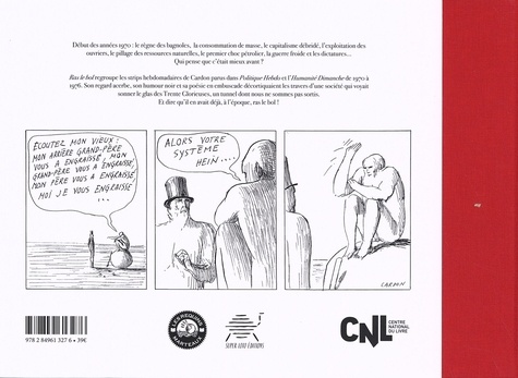 Ha, le début des années 70, le règne des bagnoles, le début du capitalisme débridé, l'exploitation des ouvriers, le premier krach pétrolier, la consommation de masse et la dilapidation des ressources naturelles, le Vietnam et les dictatures... Qui a dit que c'était mieux avant ? Cardon, grand dessinateur de presse, a publié des bandes dessinées hebdomadaires à l'Humanité Dimanche et à Politique Hebdo de 1970 à 1976, avant de faire la carrière qu'on lui connaît au Canard Enchaîné. Réunies ici dans ce recueil intitulé "Ras le bol ! " , ces grandes planches posent son style graphique et emblématique qu'il aura par la suite, avec ses travailleurs à l'aspect de personnages nus sous le joug des puissants et ses motifs symboliques récurrents... En lisant ces pages, nous saute aux yeux la vision de Cardon sur le cynisme politique, les guerres, la pollution, la vie en société, la résistance et la mort. Bien avant la lutte pour la sauvegarde du climat et le greenwashing, c'est comme si rien n'avait changé, et que les choses avaient seulement empiré. Cardon avait chroniqué, chaque semaine, le début de la fin de la fête pour nos sociétés, et il en avait déjà, à l'époque, ras le bol !