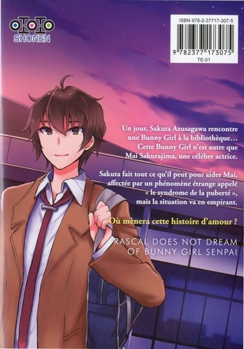 Un jour, Sakuta Azusagawa rencontre une Bunny Girl à la bibliothèque... Cette Bunny Girl n'est autre que Mai Sakurajima, une célèbre actrice. Sakuta fait tout ce qu'il peut pour aider Mai, affectée par un phénomène étrange appelé "le syndrome de la puberté", mais la situation va en empirant. Où mènera cette histoire d'amour ? RASCAL DOES NOT DREAM OF BUNNY GIRL SENPAI. ,