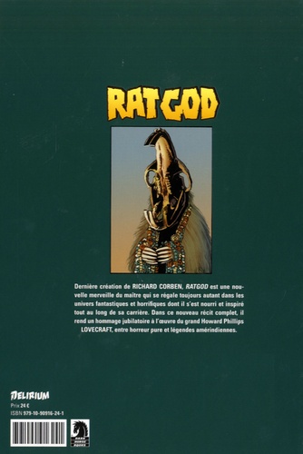 Arkham, Massachussets, dans les années 1920. Clark Elwood, professeur au sein de la célèbre université de Miskatonic, rencontre la belle Kito qui va immédiatement le séduire. Mais Kito est originaire d'un village reculé, dissimulé aux yeux des hommes et de la civilisation moderne dans les vastes forêts ancestrales du Massachussets où se pratiquent encore des rituels païens en hommage à de monstrueuses divinités oubliées... Lorsqu'elle disparaît soudainement, Elwood n'a qu'une idée en tête : retrouver la belle, quitte à affronter tout ce qui se mettra en travers de sa route, inconscient des abominations issues du fond des âges qui oeuvrent dans l'ombre... Dernière création de Richard Corben, Ratgod est une nouvelle merveille du maître qui se régale toujours autant dans les univers fantastiques issus des pulps dont il s'est nourri et inspiré tout au long de sa carrière. Dans ce nouveau récit complet, il rend un hommage jubilatoire à l'oeuvre du grand Howard Phillips Lovecraft, entre horreur pure et humour noir ! Traduction de François Truchaud, préface inédite et illustrée de Derf Backderf.