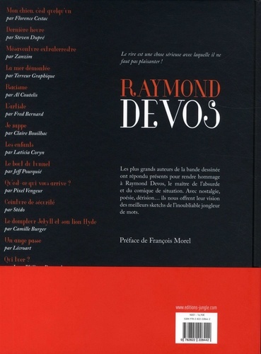 Les plus grands auteurs de la bande dessinée ont répondu présents pour rendre hommage à Raymond Devos, le maître de l'absurde et du comique de situation. Avec nostalgie, poésie, dérision... ils nous offrent leur vision des meilleurs sketchs de l'inoubliable jongleur de mots.
