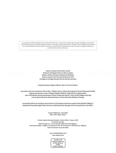 Tombé dans le coma à la suite d'un accident, Jean-Pierre, le frère de Michel et mythique "Pilote sans visage", a perdu son combat contre la mort. Trois générations de Vaillant sont sous le choc, brisées après le désastre qui a frappé l'écurie. Henri, le père, ne trouvera de repos qu'en obtenant justice, dût-il régler lui-même ses comptes avec celui qu'il considère désormais comme un assassin : Ethan Dasz, responsable du démantèlement de Vaillante et coupable aux yeux du patriarche d'avoir poussé son fils à un acte désespéré. C'est pourtant aux plus sombres heures que l'espoir renaît : grâce au génie de Patrick, le fils de Michel, les innovations high-tech de Now Future permettent à une Vaillante révolutionnaire de s'engager aux 24 Heures du Mans ! Après dix ans d'absence, Michel retourne sur le circuit de la Sarthe, en compagnie de Nicolas Prost et d'un troisième équipier : la Québecoise Elsa Tainmont, pilote exubérante à la conduite intuitive. Ce sera l'unique chance pour la marque comme pour le clan de se relever. Mais la team peut-elle se fier à Elsa, électron libre au comportement imprévisible ? Michel Vaillant aura-t-il la force d'affronter les soupçons que la justice suisse fait naître au sein de sa propre famille ? Car à Genève, les autorités ont ouvert une enquête : c'est suspecté d'homicide que Michel prend le départ des 24 Heures du Mans... Avec des scènes de course qui rappellent pourquoi Michel Vaillant est la plus grande BD de sport automobile, une parfaite maîtrise de la tension et des tonalités plus sombres, ce nouvel opus nous plonge dans la tourmente aux côtés de son protagoniste. Un vent de rébellion souffle sur le clan Vaillant !
