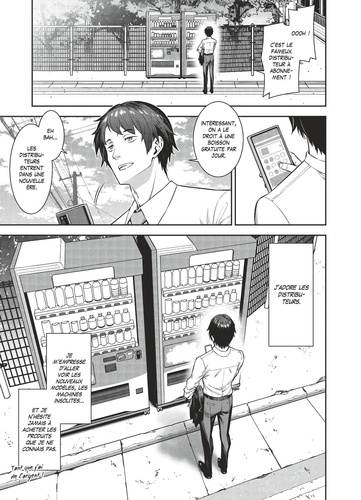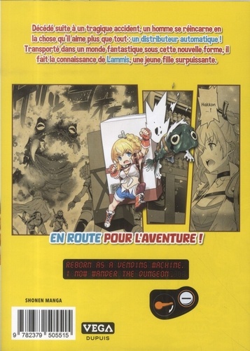 Un fanatique des distributeurs de boissons est malencontreusement victime d'un accident. Il se retrouve alors réincarné dans un donjon d'un monde fantastique, mais en tant que distributeur automatique ! Il peut voir et entendre, mais il est immobile, son discours se limitant à des phrases de distributeurs automatiques japonais, telles que "Bonjour" ou "Dommage". En tant que distributeur automatique, il découvre qu'il peut distribuer n'importe quel article qu'il a acheté dans sa vie antérieure. Il est également capable d'utiliser des pièces excédentaires pour ajouter des fonctionnalités supplémentaires à son corps de distributeur automatique. De plus, il peut utiliser certaines capacités magiques, notamment la métamorphose, l'invisibilité, la télékinésie et un champ de force défensif. L'auteur associe avec bonheur le côté shônen d'une aventure heroic fantasy et un humour décalé se moquant des isekai.