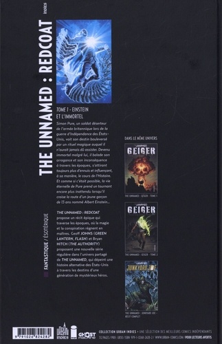 Simon Pure, un soldat déserteur de l'armée britannique lors de la guerre d'Indépendance des Etats-Unis, voit son destin bouleversé par un rituel magique auquel il n'aurait jamais dû assister. Devenu immortel malgré lui, il balade son arrogance et son inconséquence à travers les époques, s'attirant toujours plus d'ennuis et influençant, à sa manière, le cours de l'histoire. Et comme si c'était possible, la vie éternelle de Pure prend un tournant encore plus inattendu lorsqu'il croise la route d'un jeune garçon de 13 ans nommé Albert Einstein... 'The Unnamed : Redcoat' propose un récit épique qui traverse les époques, où la magie et la conspiration règnent en maîtres. Geoff Johns (Green Lantern, Flash) et Bryan Hitch (The Authority) proposent une nouvelle série régulière dans l'univers partagé de The Unnamed, qui dépeint une histoire alternative des Etats-Unis à travers les destins d'une génération de mystérieux héros.